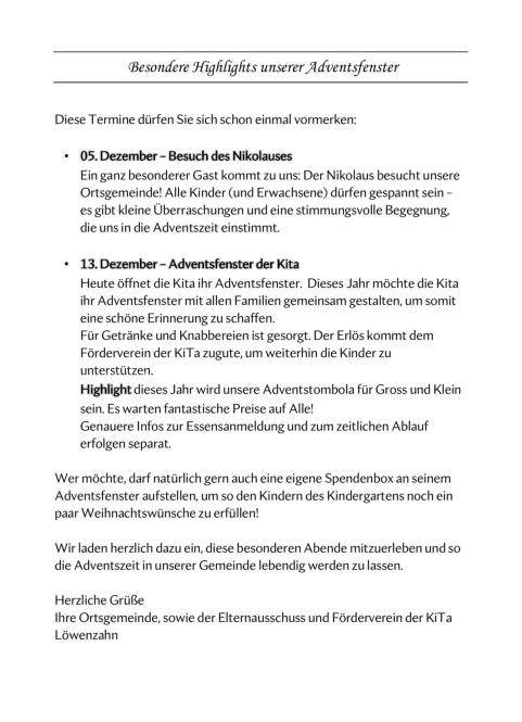 Zusammenhalt in der Gemeinde setzten. Auch in den